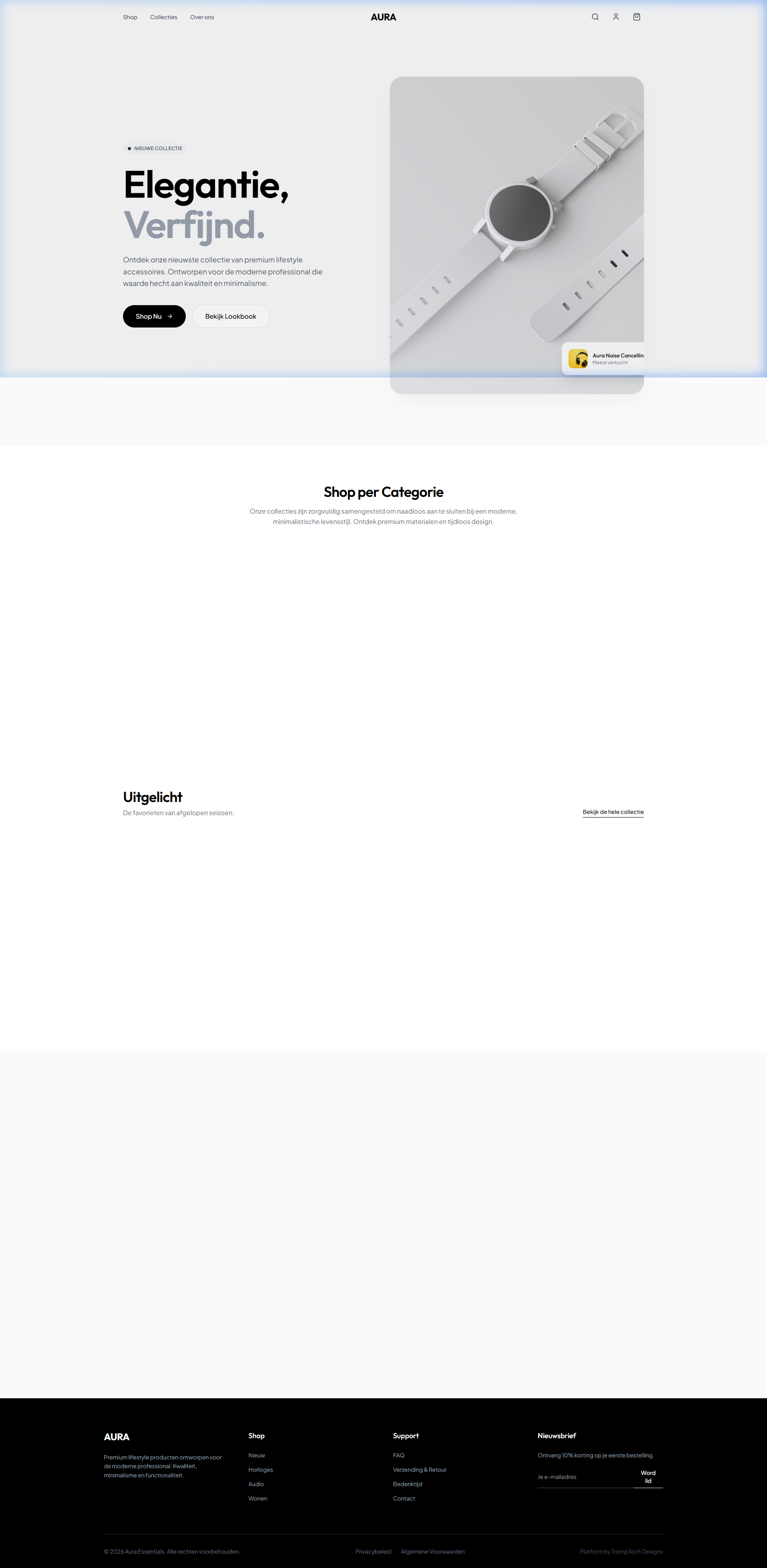 Premium webshop met productcatalogus, winkelwagen, zoekfunctie en klantenaccount. Klaar om te lanceren.